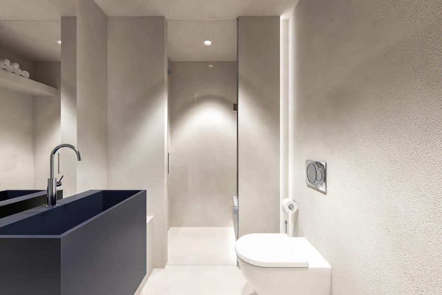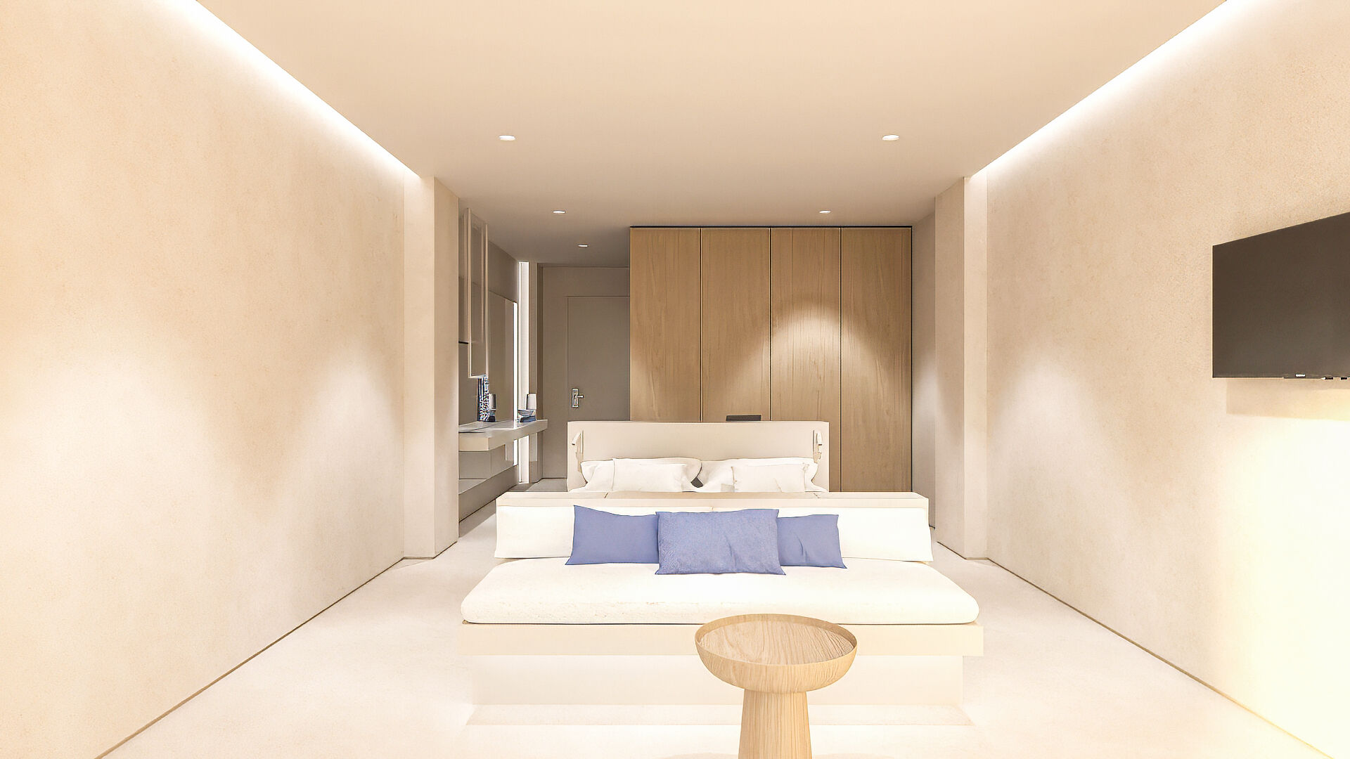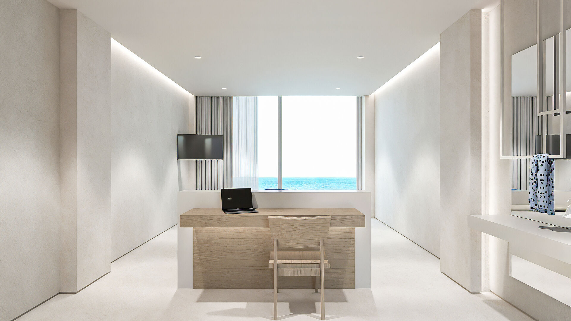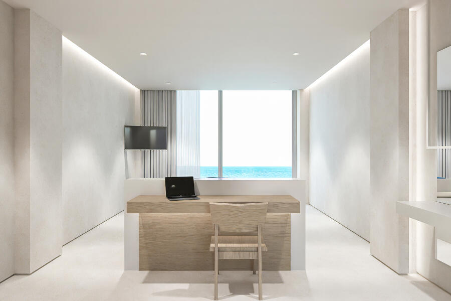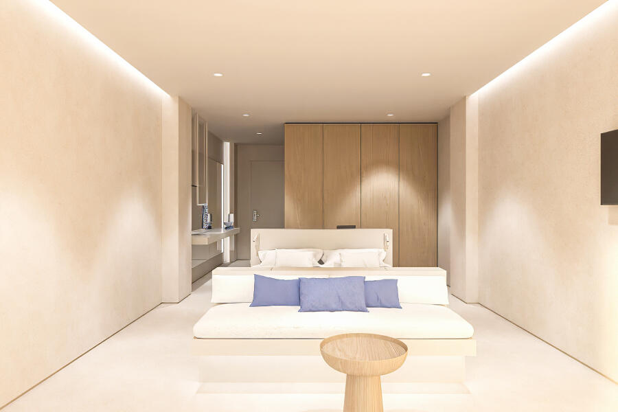 Η εσωτερική διακόσμηση διατηρεί τη χαρακτηριστική φιλοσοφία του ξενοδοχείου: λιτή, διακριτική και αρμονική. Το γυαλί και το ξύλο κυριαρχούν στον χώρο, επιτρέποντας στο φυσικό φως να ρέει ελεύθερα και ενοποιώντας το εσωτερικό με το εκπληκτικό εξωτερικό περιβάλλον. Αρκετά ευρύχωρο για να φιλοξενήσει έως και τρία άτομα, το δωμάτιο προσφέρει άμεση πρόσβαση στη θάλασσα, προσκαλώντας τους επισκέπτες να βουτήξουν στα κρυστάλλινα νερά ανά πάσα στιγμή. Είναι ένα αποκλειστικό καταφύγιο για όσους δεν αρκούνται απλώς στο να κοιτούν τη θάλασσα, αλλά επιθυμούν να ζουν δίπλα της.